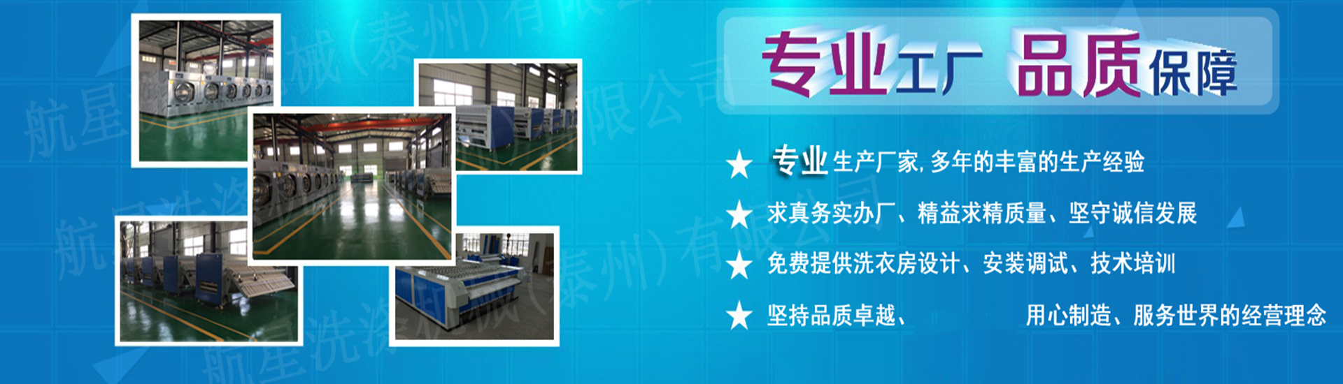 航星洗滌機械(泰州)有限公司位于江蘇泰州,是生產制造服裝洗滌機械、洗衣房設備,賓館、酒店等洗衣房設備的專業廠家,自創辦以為憑借著優秀的產品較高性價比、售后服務好等特點,獲得了較多消費者的好評. 我公司主要提供洗滌機械、洗滌設備、洗衣設備等產品的開發生產與銷售,所銷售的洗滌機械產品,型號齊全、規格多樣,其中有:工業洗衣機、洗脫兩用機、洗脫烘一體機、服裝石磨水洗機、襪子染色機、絲綢砂洗機、脫水機、脫油機、脫油烘干機、烘干機、燙、熨平機、蒸氣燙臺、地毯清洗機等 洗滌機械產品。產品廣泛應用于紡織、水洗廠、漂染廠、砂洗廠、印染、絲綢、服裝以及化工乳膠業、賓館、飯店、醫院、招待所等行業。    我公司堅持“以質量求生存,以科技發展為目標”的企業宗旨,不斷提高關鍵工序的生產能力,建設現代化企業管理制度,開拓市場,加強國內國外銷售網絡。我公司注重產品質量和信譽,產品不僅暢銷全國而且出口東南亞等地。 航星洗滌機械(泰州)有限公司竭誠歡迎國內外客戶到我公司進行參觀及購買我公司的洗滌機械產品,我公司相信規格齊全、價格公道的洗滌機械產品總有一款適合您。